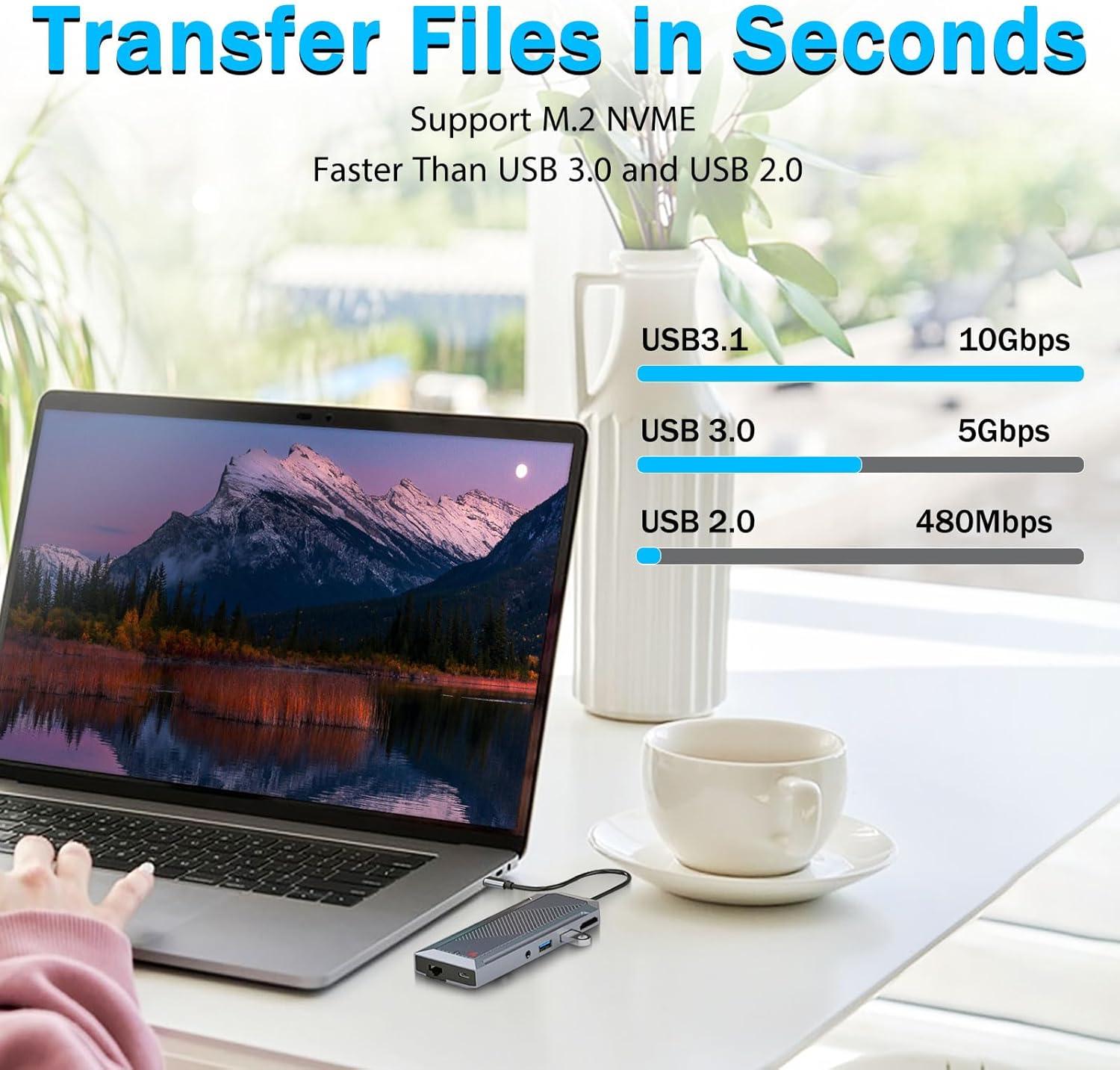 Tidak seperti hub USB tradisional, perangkat ini dilengkapi casing SSD khusus yang mendukung solid-state drive M.2 NVMe. Fitur ini memungkinkan pengguna untuk menambahkan penyimpanan berkecepatan tinggi langsung ke ruang kerja mereka tanpa memerlukan drive eksternal terpisah.