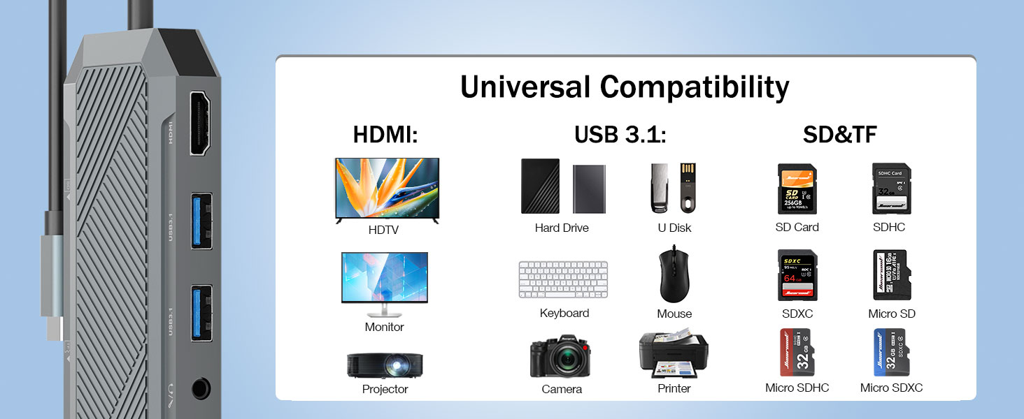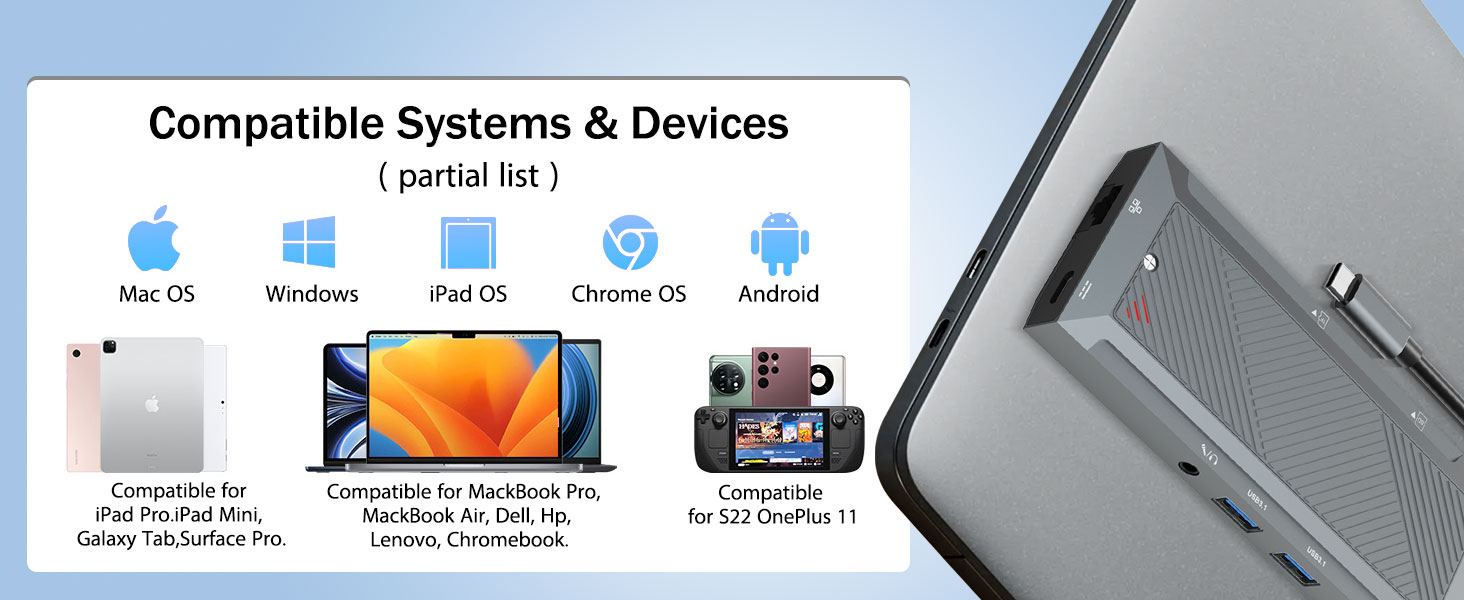 Baik digunakan untuk pekerjaan profesional, produksi kreatif, perjalanan bisnis, atau pengaturan kantor di rumah, hub ini menawarkan cara praktis dan efisien untuk memaksimalkan kinerja perangkat modern.