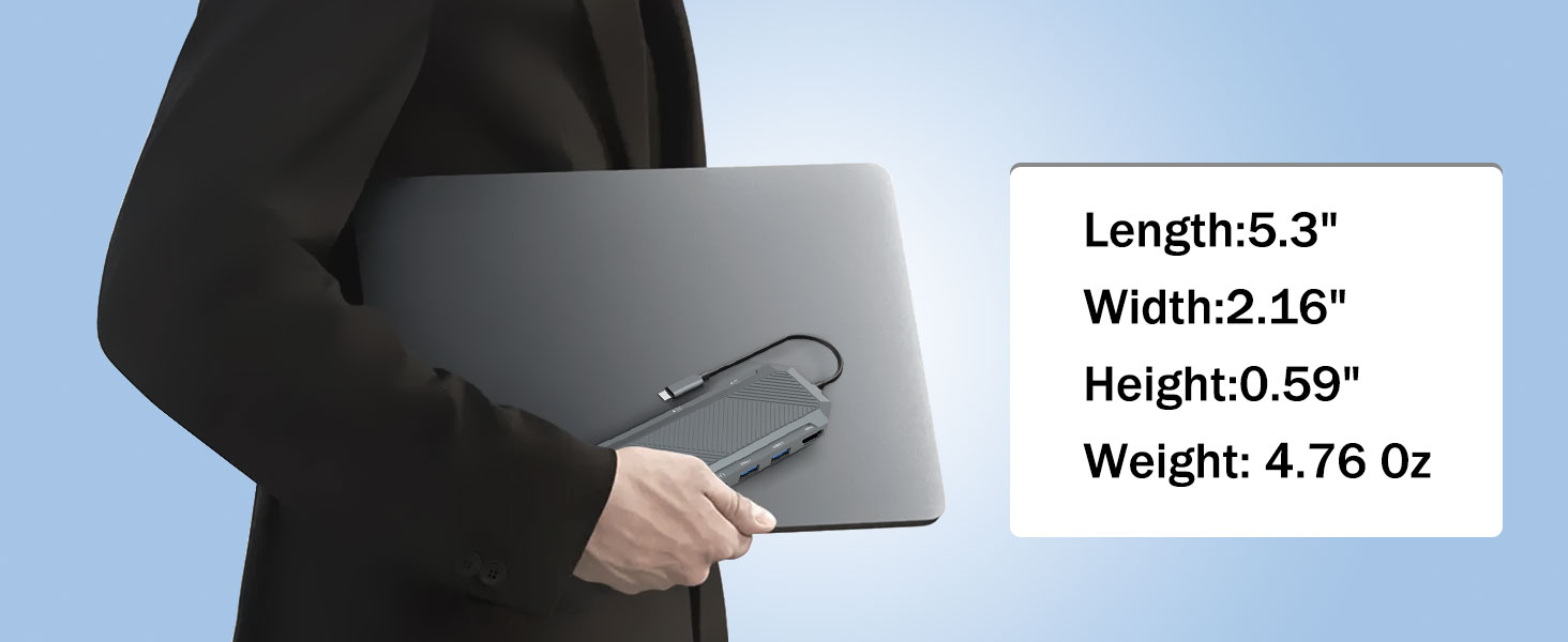 Terlepas dari fungsinya yang kuat, Hub USB-C 9-in-1 dengan Enklosur SSD untuk M.2 NVMe 4K 60Hz HDMI Splitter dirancang agar tetap ringkas dan ringan. Hal ini membuatnya mudah untuk dibawa dalam tas laptop, ransel, atau tas perjalanan.