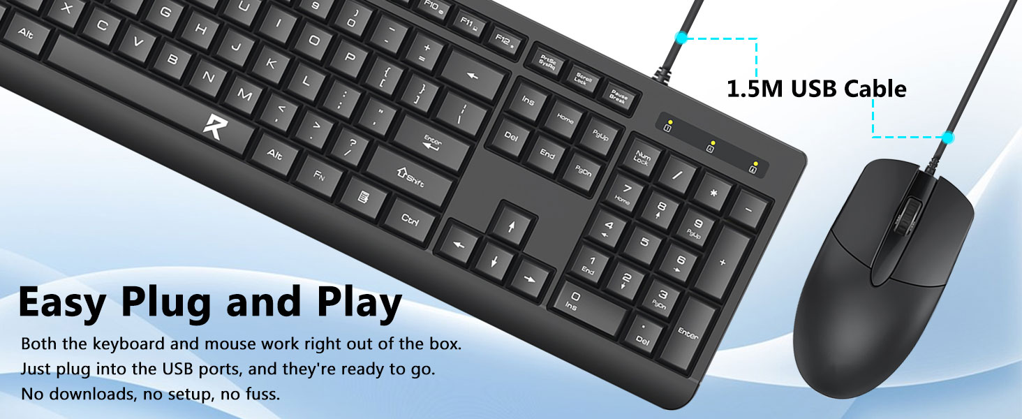 Fungsionalitas plug-and-play memungkinkan pengguna menghubungkan keyboard dan mouse dengan cepat tanpa menginstal perangkat lunak tambahan.