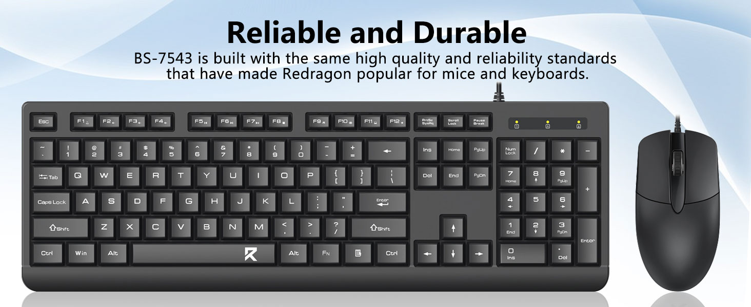 Kombinasi Keyboard dan Mouse Berkabel BC7543 Hitam dilengkapi tata letak keyboard ukuran penuh standar, termasuk keypad numerik khusus. Tata letak ini ideal untuk tugas kantor seperti entri data, pekerjaan keuangan, dan manajemen spreadsheet.