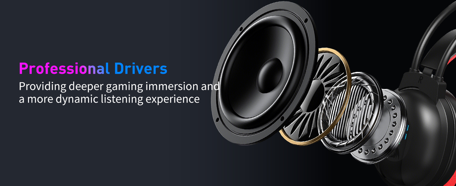 Driver stereo berkualitas tinggi memungkinkan pemain mendeteksi suara halus dalam game seperti langkah kaki musuh atau efek lingkungan.