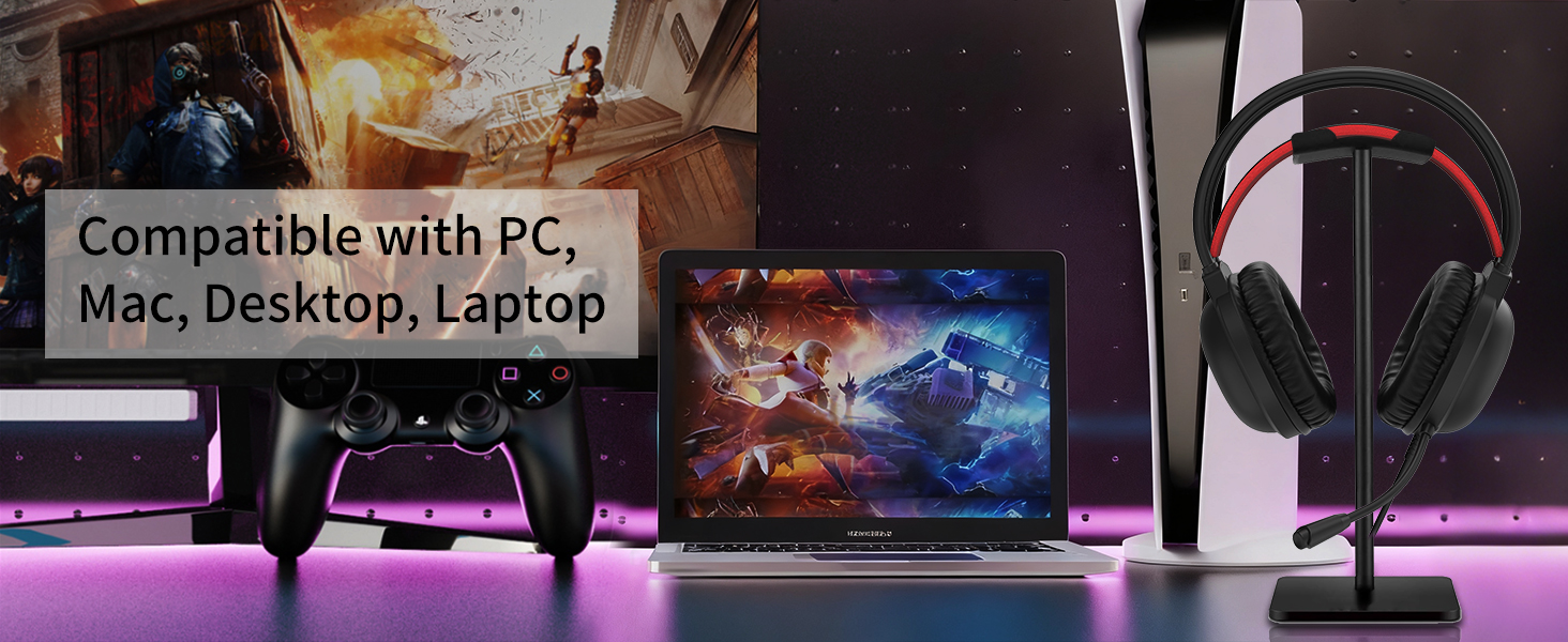 Headset ini kompatibel dengan berbagai perangkat, termasuk konsol game, PC, laptop, dan perangkat seluler yang mendukung koneksi audio standar.