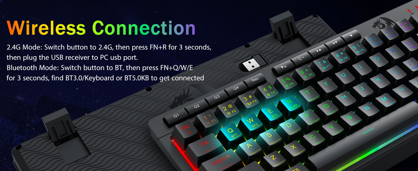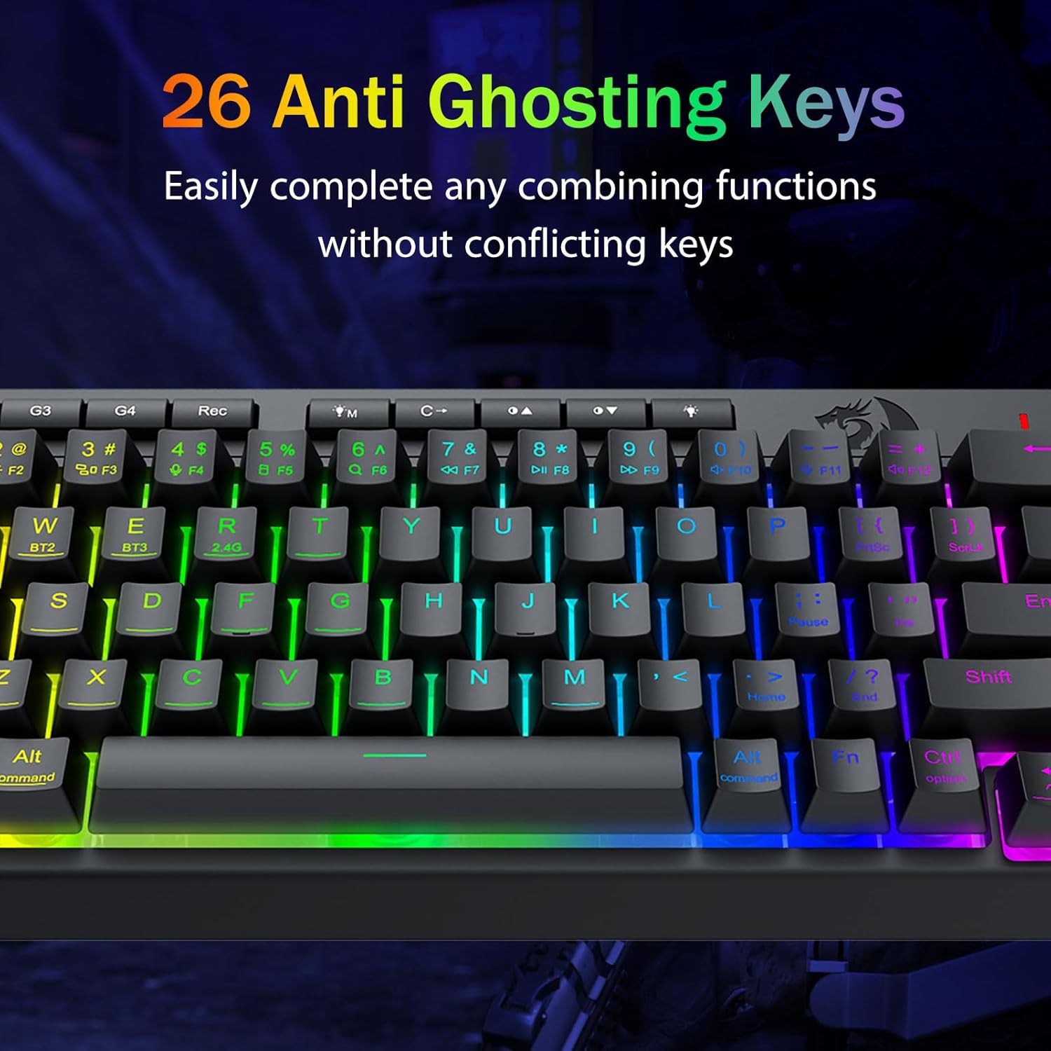Keyboard Gaming Nirkabel Portabel Black K519 Pro dari Redragon, diproduksi oleh Chuangquan, memberikan contoh teknik tingkat profesional untuk para gamer dan profesional. Desain tri-mode serbagunanya mendukung Bluetooth yang stabil, koneksi nirkabel 2,4GHz latensi rendah, dan koneksi kabel USB-C, memungkinkan peralihan yang mudah antara tiga perangkat secara bersamaan. Keyboard ini dilengkapi tombol makro khusus yang dapat disesuaikan sepenuhnya melalui perangkat lunak intuitif, memungkinkan pengguna untuk menetapkan perintah atau pintasan kompleks untuk meningkatkan produktivitas dan efisiensi bermain game. Pencahayaan RGB dinamis dengan berbagai efek mempersonalisasi pengaturan, sementara rollover N-key dan anti-ghosting memastikan setiap penekanan tombol dicatat secara akurat selama sesi intens.