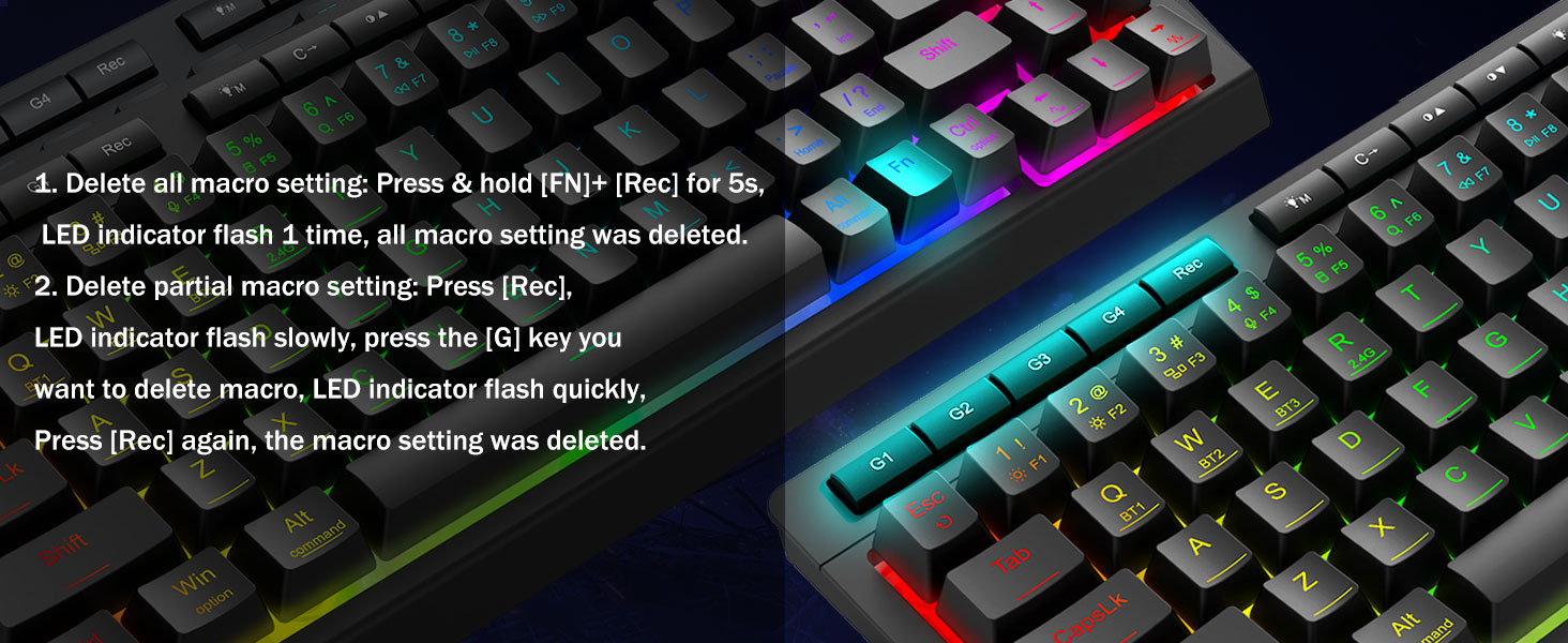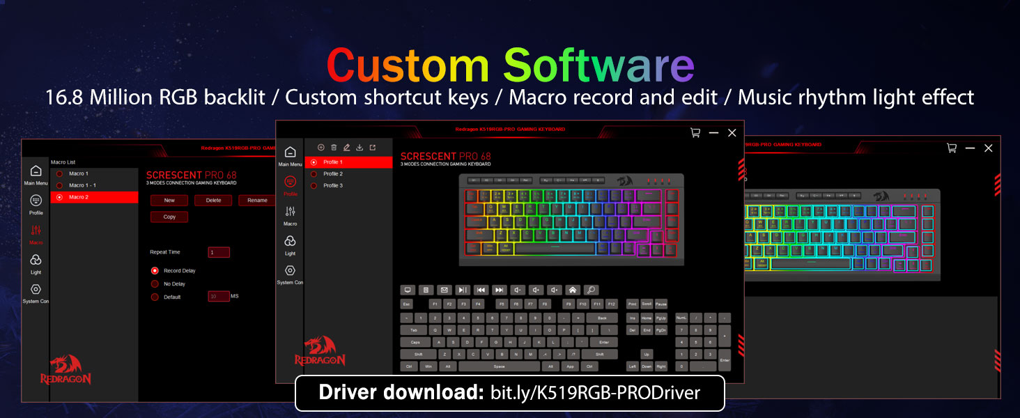Makro yang Dapat Disesuaikan, Kontrol yang Mudah -Program 4 tombol makro onboard (G1-G4) secara instan—tidak memerlukan perangkat lunak. Rekam kombo kompleks untuk bermain game, pintasan untuk produktivitas, atau perintah media. Definisikan ulang alur kerja Anda dalam hitungan detik. Anda juga dapat menggunakan perangkat lunak untuk menyesuaikan fungsi, membuat makro, menyesuaikan lampu RGB, dan mengatur pintasan. Tautan perangkat lunak: bit.ly/K524RGB-PRODriver