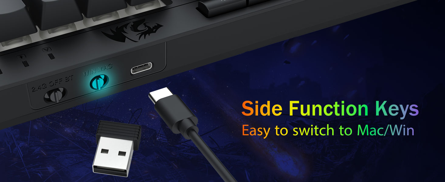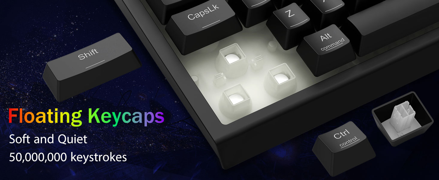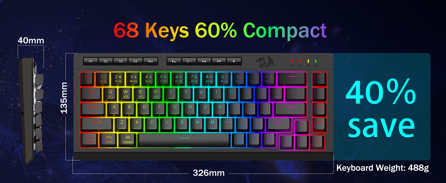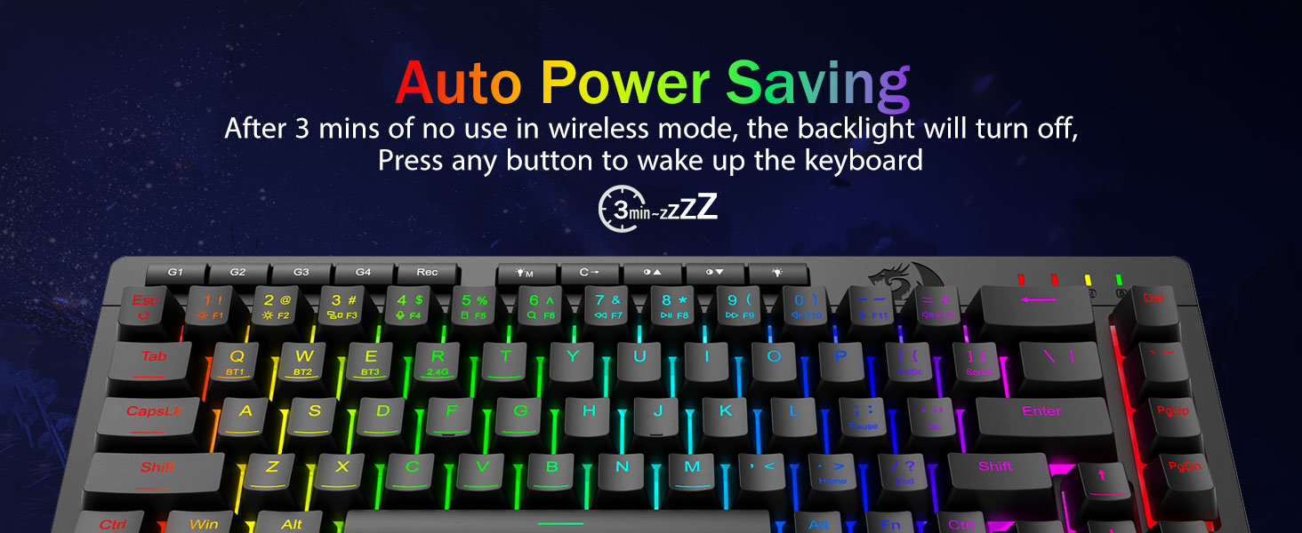 Pencahayaan RGB yang Imersif & Suasana yang Dapat Disesuaikan -Keluarkan 16,8 juta warna RGB dengan 8 mode preset (Rainbow Wave, Reactive Typing) + 6 profil DIY. Sesuaikan kecerahan dari cahaya terang ke mode tersembunyi—ideal untuk bermain game larut malam atau penggunaan di kantor.