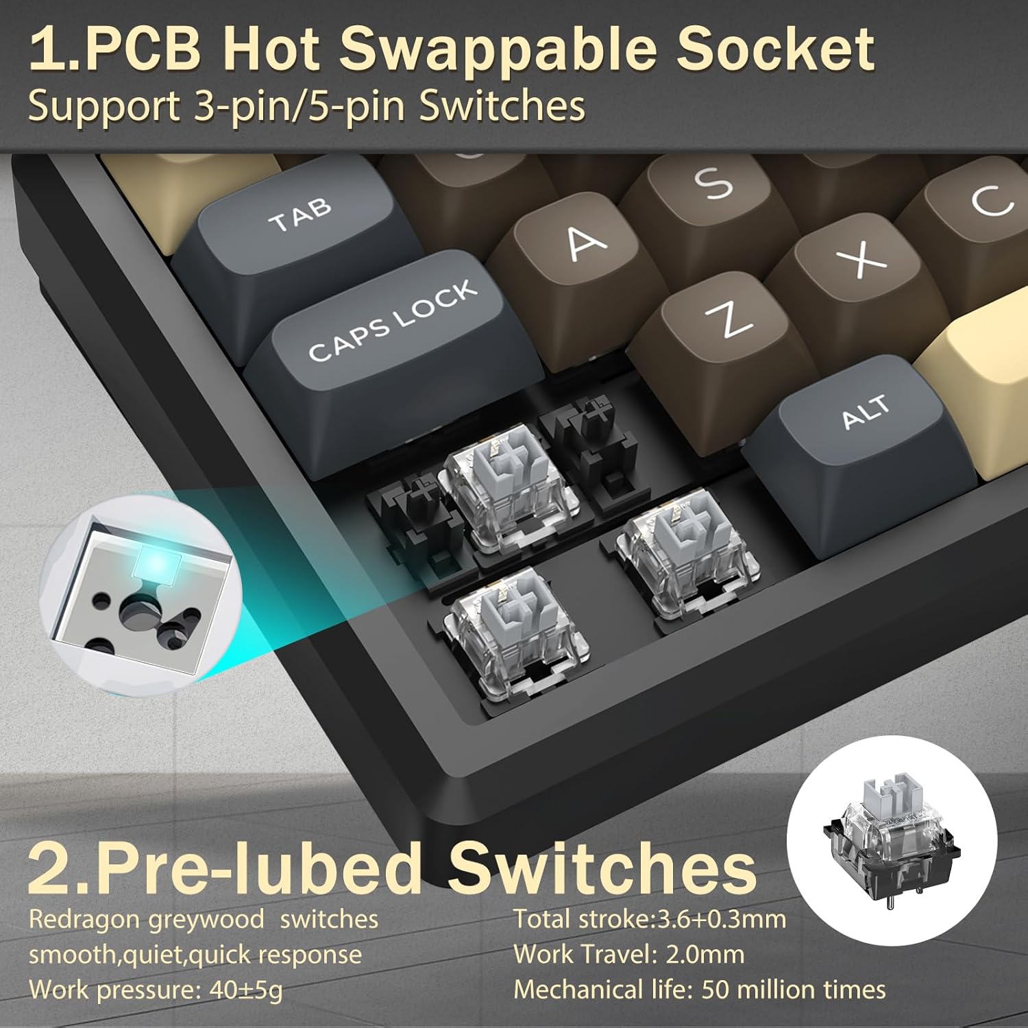 Umur Kunci: Hingga 50 juta penekanan tombol