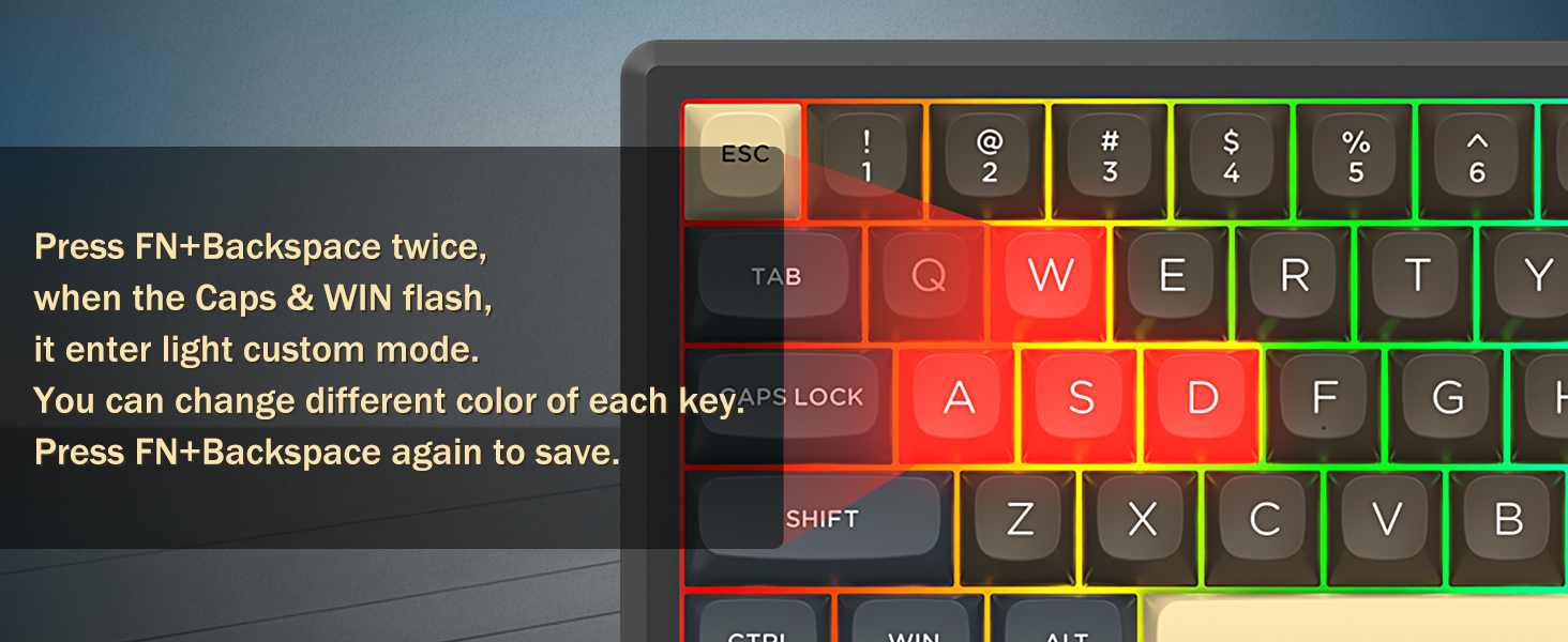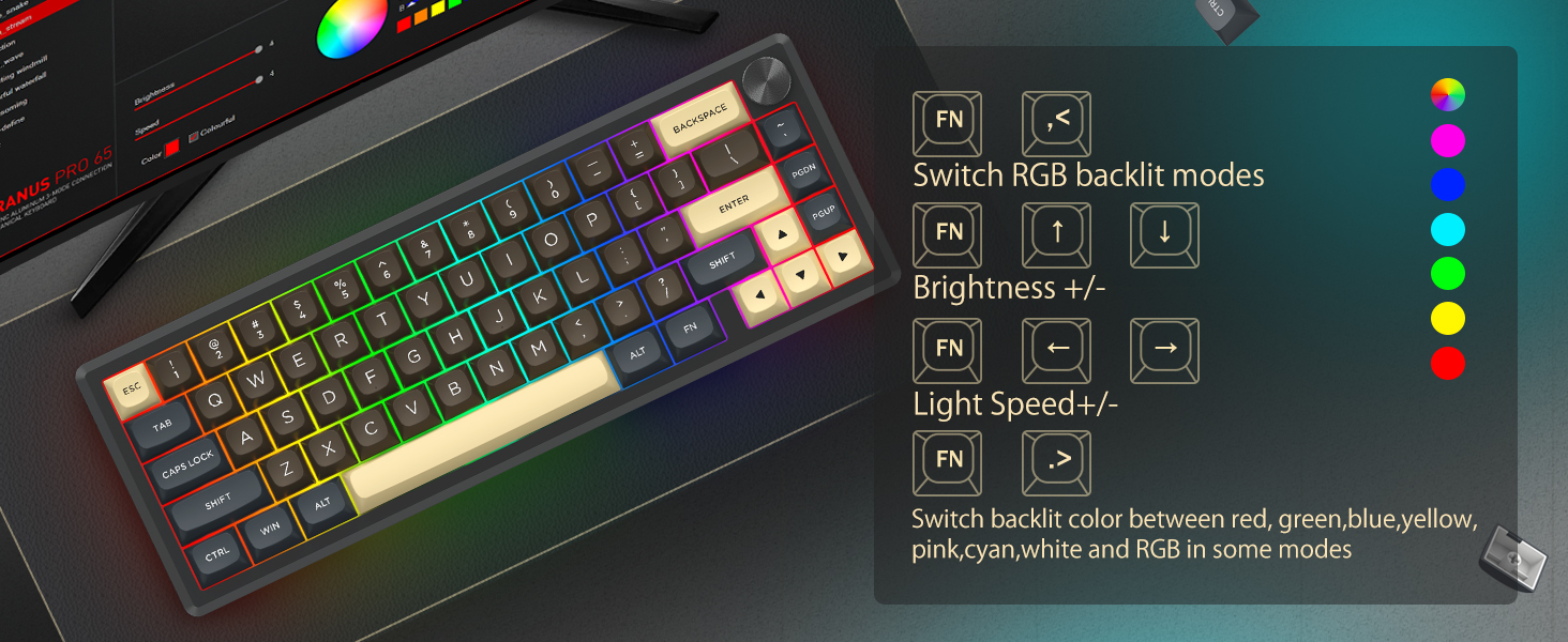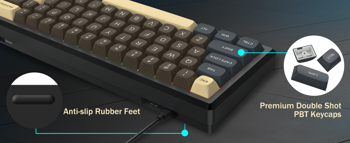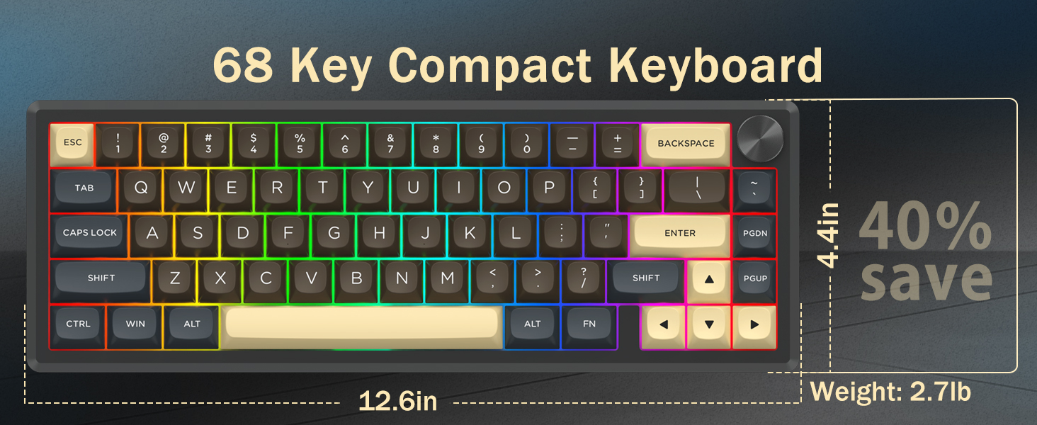 Dengan tata letak 60%, keyboard ini menghilangkan tombol-tombol yang tidak penting sekaligus mempertahankan fungsionalitas inti melalui kombinasi tombol. Desain ini membantu mengurangi kekacauan di meja dan memberikan lebih banyak ruang untuk pergerakan mouse, sehingga cocok untuk lingkungan gaming dan produktivitas.