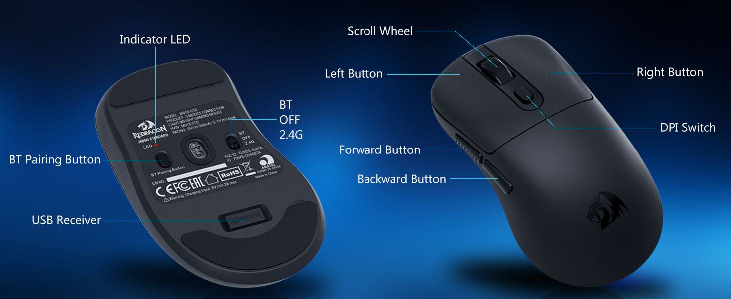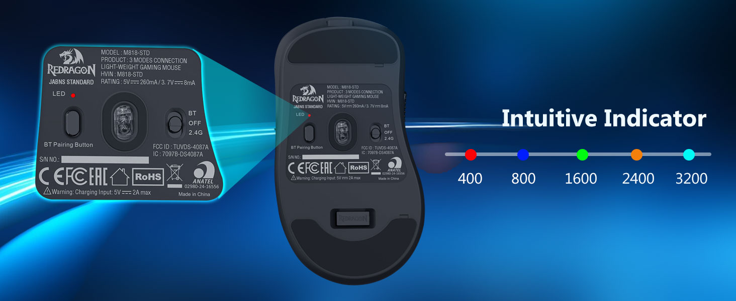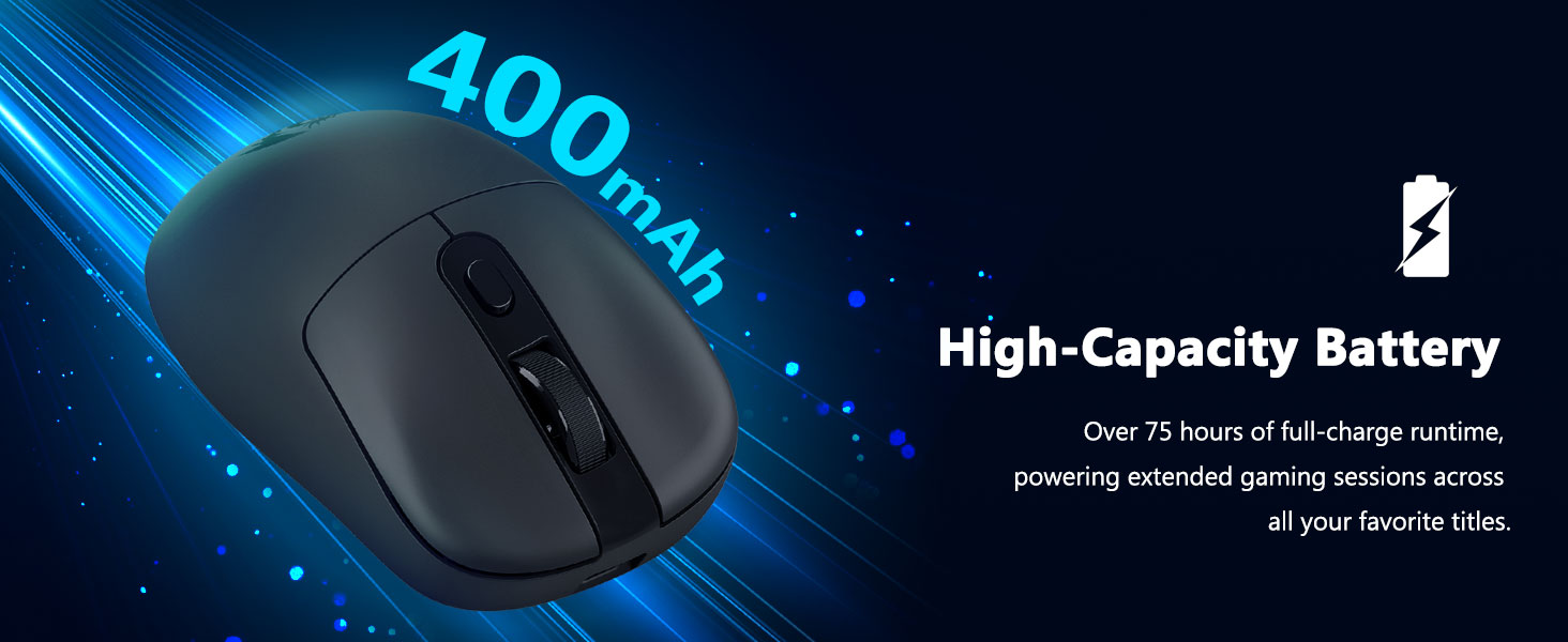 Mode nirkabel 2,4GHz memastikan input stabil dan responsif, mengurangi lag, dan mempertahankan kontrol yang konsisten selama aktivitas cepat.