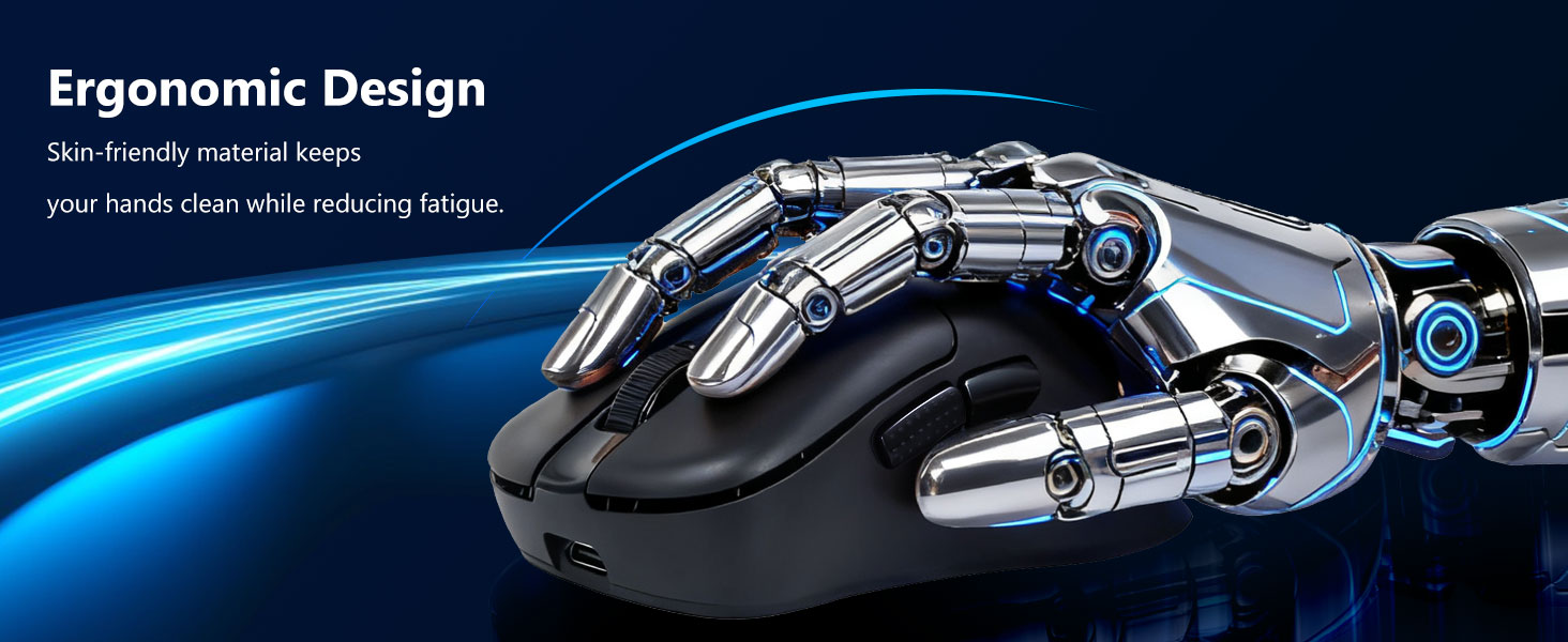 Mouse dibentuk untuk mendukung posisi tangan alami, mengakomodasi gaya genggaman yang berbeda. Ini membantu mengurangi kelelahan selama penggunaan jangka panjang.