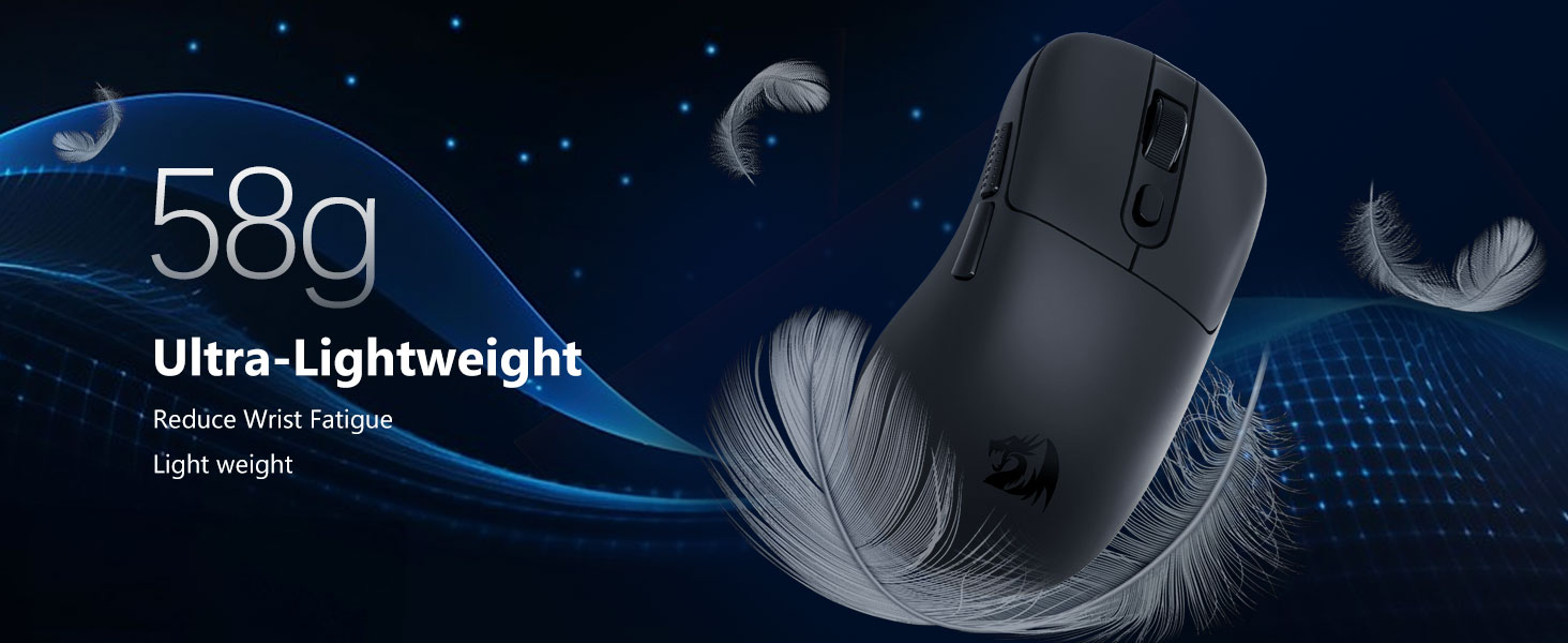 Mouse dibentuk untuk mendukung posisi tangan alami. Permukaannya memberikan cengkeraman yang stabil, memungkinkan kontrol yang akurat selama gerakan cepat dan tepat.