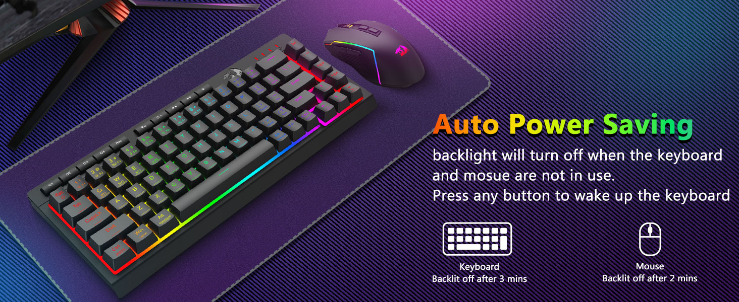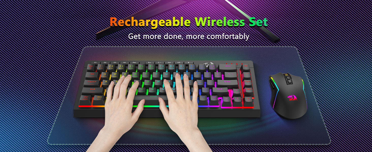 Keyboard dan Mouse Pencahayaan RGB yang Imersif- Bebaskan 16,8 juta warna RGB dengan 8 mode preset (Rainbow Wave, Reactive Typing) + 6 profil DIY. Sesuaikan kecerahan dari cahaya terang ke mode tersembunyi—ideal untuk bermain game larut malam atau penggunaan di kantor.