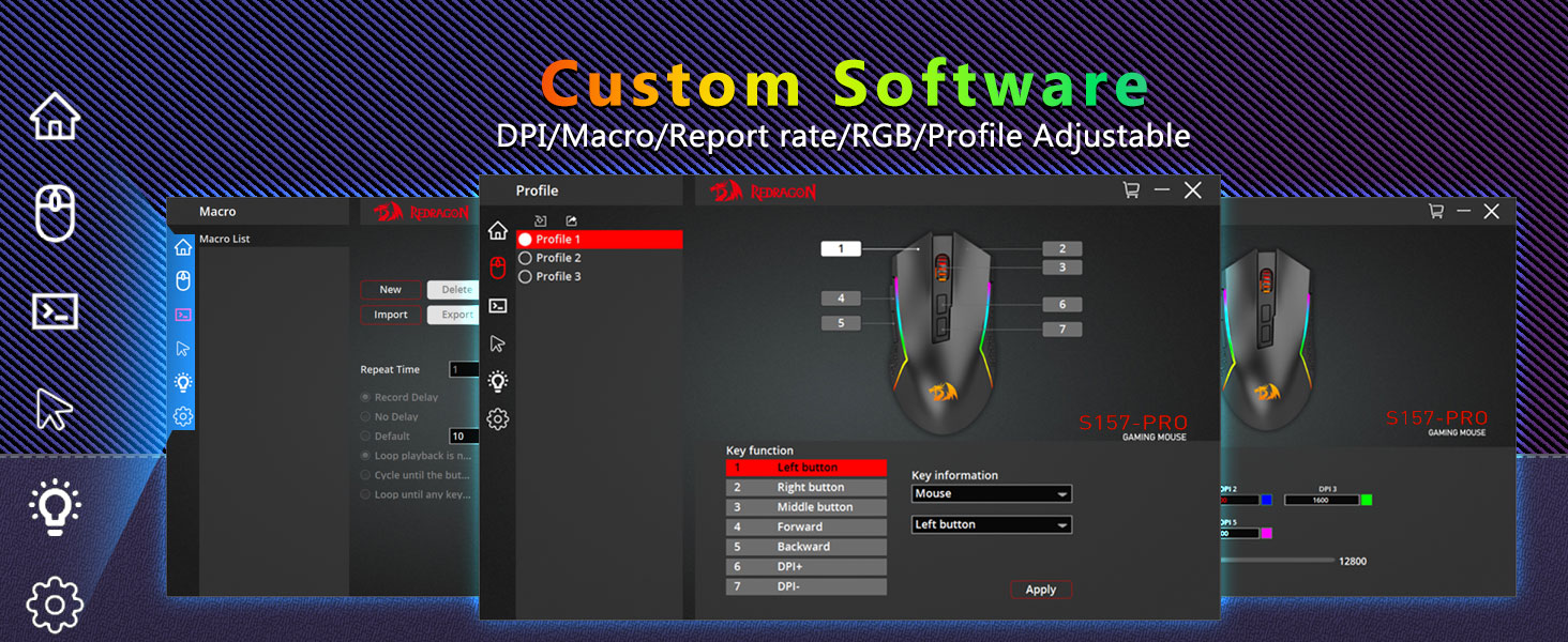 Maks 12800 DPI Dapat Disesuaikan- Bebaskan 16,8 juta warna RGB dengan 8 mode preset (Rainbow Wave, Reactive Typing) + 6 profil DIY. Sesuaikan kecerahan dari cahaya terang ke mode tersembunyi—ideal untuk bermain game larut malam atau penggunaan di kantor.