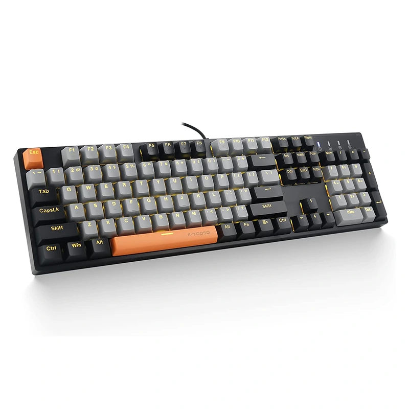 E-YOOSO Z-14 104 Key Keyboard Gaming Mekanis Backlit Kuning Solid Ukuran Penuh dengan Sakelar Merah. Tekstur bagus, harga terjangkau, bisa main game dan bekerja sama