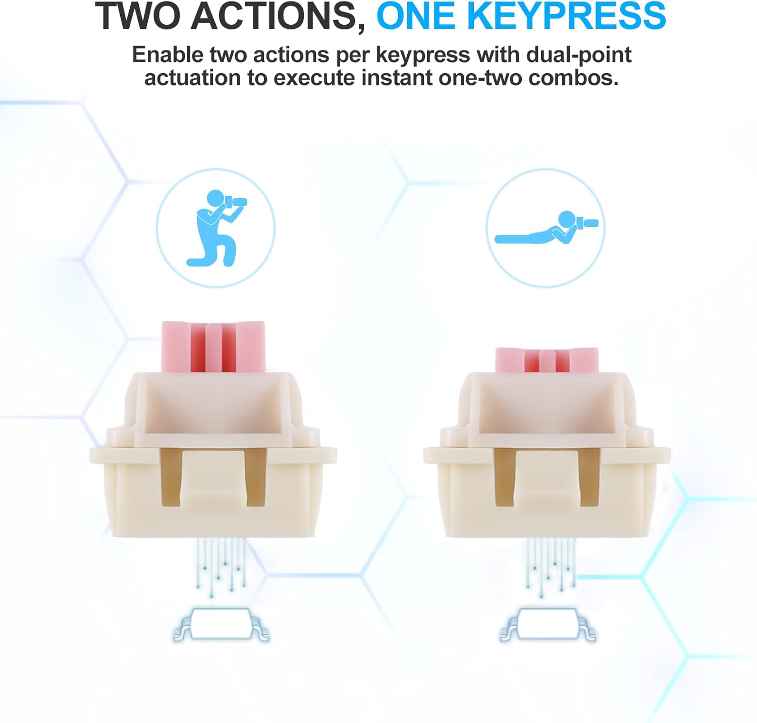 Dengan kemampuan pemicu cepat dan aktuasi yang dapat disesuaikan, keyboard ini memberikan keunggulan nyata dalam lingkungan serba cepat yang mengutamakan pengaturan waktu dan daya tanggap.