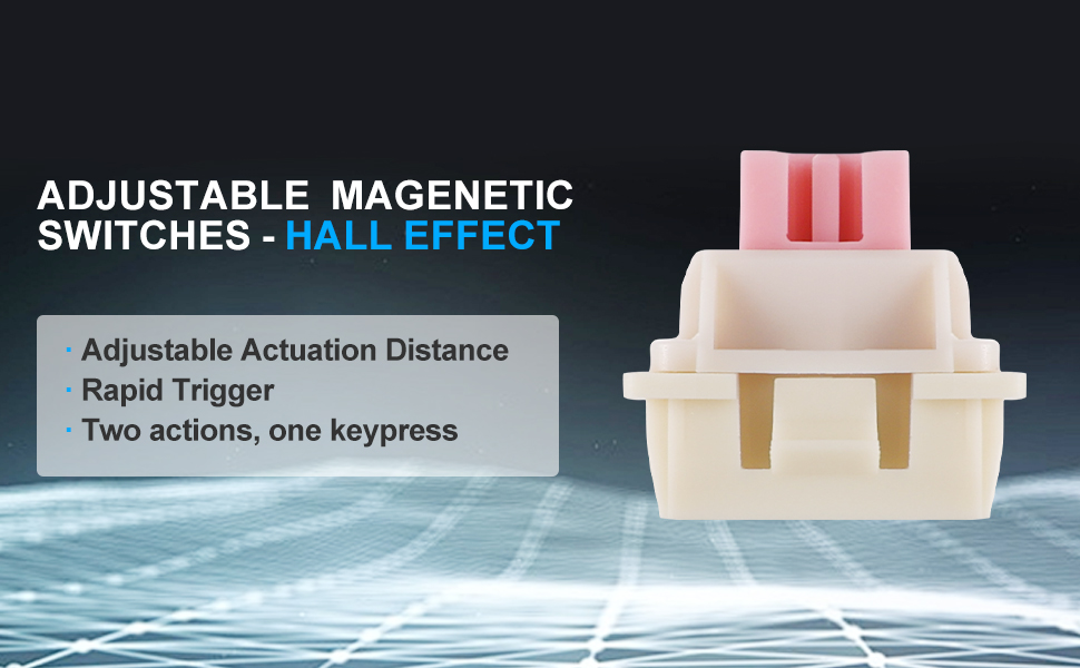 J: Sakelar magnetik menggunakan sensor efek Hall untuk mendeteksi pergerakan tombol, memungkinkan titik aktuasi yang dapat disesuaikan dan kinerja yang konsisten. Hal ini mengurangi keausan dan memberikan pengalaman mengetik yang lebih lancar dibandingkan dengan sakelar mekanis tradisional.