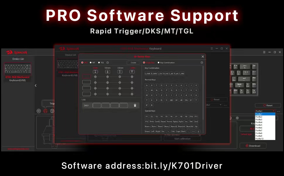 Keyboard Gaming Mekanik Sakelar Magnetik Berkabel 60% Pemicu Cepat K701 Putih/Biru-Hitam dirancang untuk pengguna yang mengutamakan presisi, kecepatan, dan faktor bentuk yang ringkas. Kombinasi teknologi saklar magnetik, fungsionalitas pemicu cepat, dan konstruksi tahan lama menjadikannya pilihan yang andal untuk bermain game dan produktivitas.