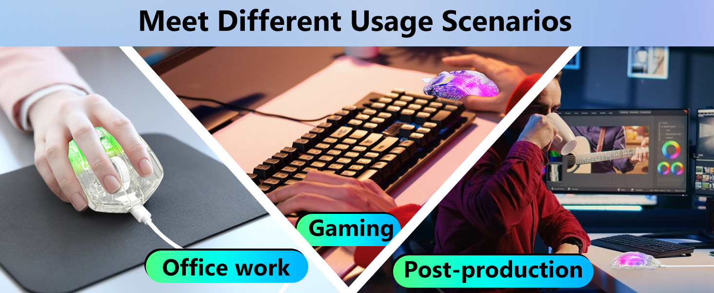 Selain bermain game, mouse bekerja dengan baik di lingkungan kantor, mendukung tugas-tugas seperti pengeditan dokumen, penelusuran, dan manajemen data.