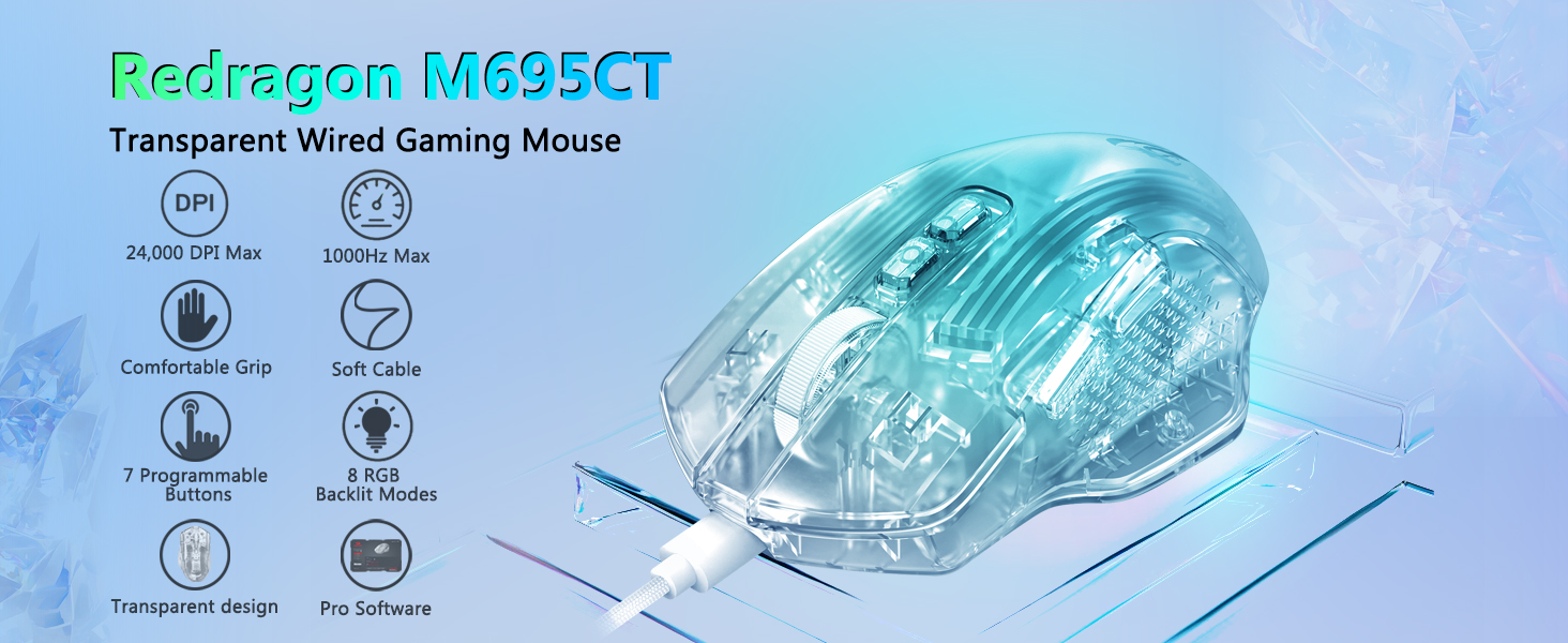Dengan koneksi kabel yang andal dan serangkaian fitur praktis, Mouse Gaming Berkabel Mode Lampu Latar LED 8 RGB M695CT 24,000 DPI Putih adalah pilihan yang dapat diandalkan bagi pengguna yang mencari kontrol yang konsisten dan kinerja efisien dalam lingkungan komputasi modern.